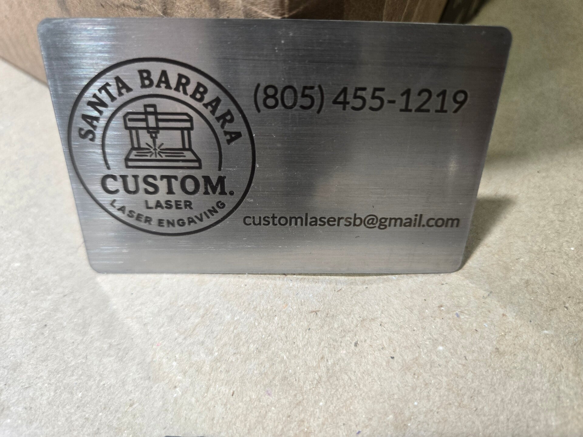 Aluminium or Stainless steel cards with your logo name or QR code.